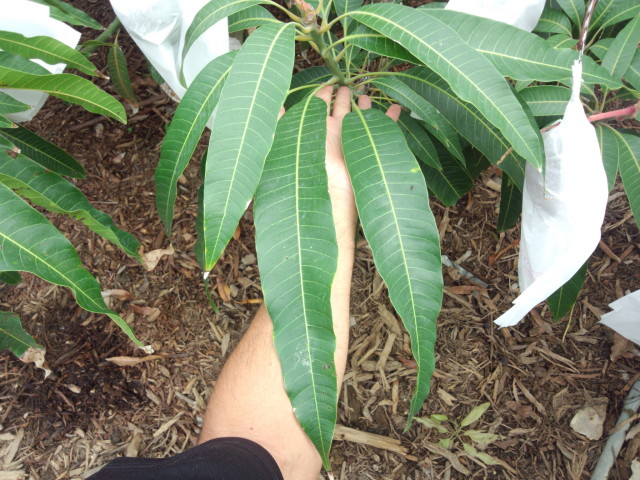 マンゴーの葉っぱとは思えない程の50cm近い大きさの葉っぱもあります。